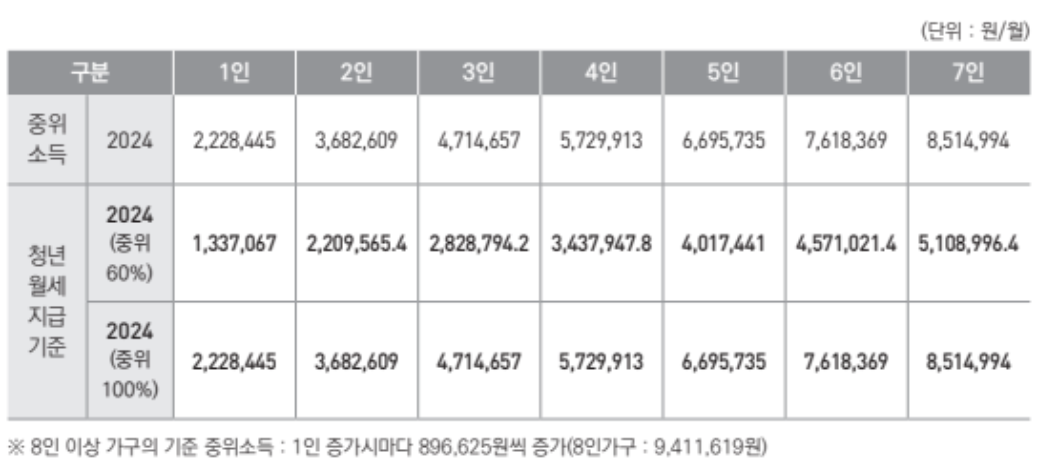 - 소득 : 원가구 중위소득 100 이하 및 청년독립가구 중위소득 60% 이하